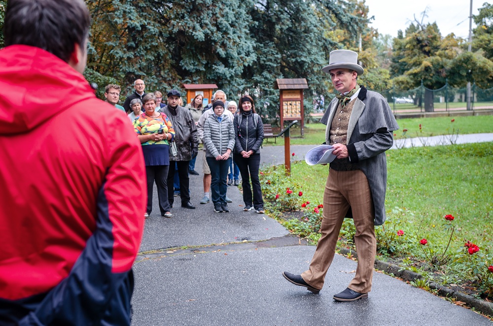 Postava průvodce v roli budějčáka – patriota, v kostýmu jako okresní hejtman František Josef Křikava z konce 19. stol, ve výkladu představení města a příběhy – ani ne tak podle letopočtů, ale lidí, kteří tu žili.